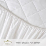 This Hallmark Pure cotton mattress protector surface will absorb any liquid and unwanted stains, protecting the valuable mattress below. With fitting elastic bands, this protector gives your mattress a luxurious look with its pure cotton fabric.
